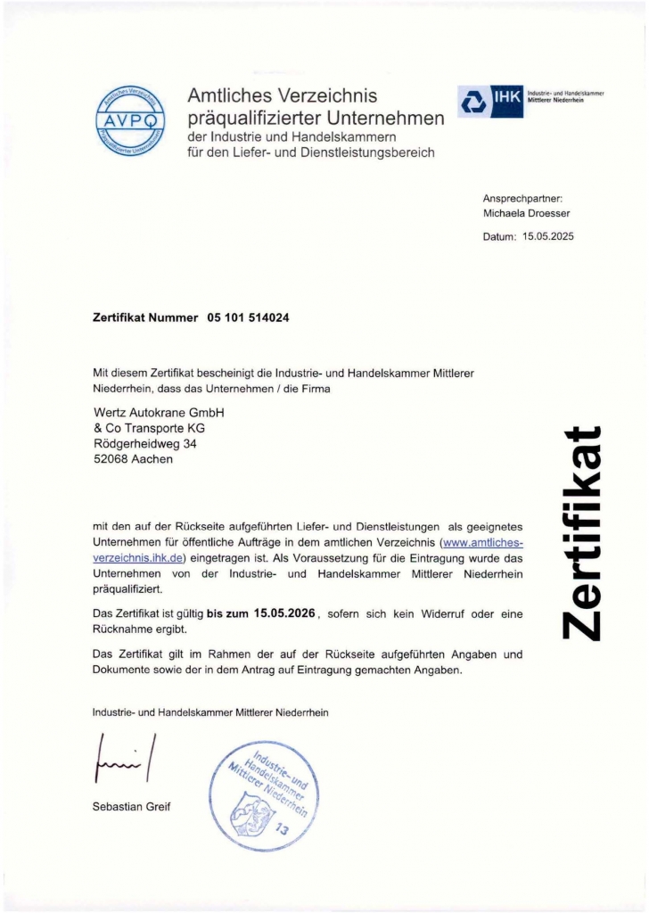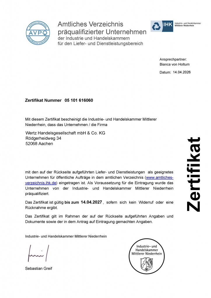 ISO ZertifikatPräqualifizierungszertifikat Handelsgesellschaft